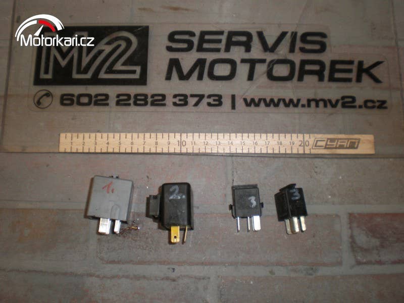 oproti fotce již pouze 1. relátko, plně funkční a zachovalý stav, cena za kus( inzerát je aktuální, prodané díly ihned mažeme, pro bližší info používejte pokud možno e-mail, děkujeme za pochopení! MV2 moto)