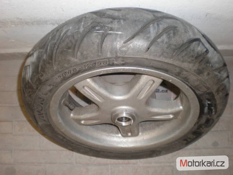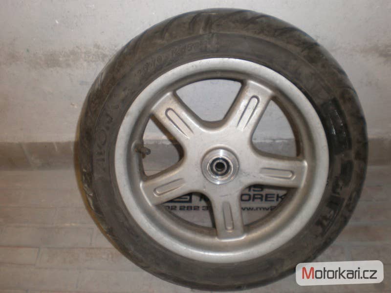 přední kolo 12' s pneumatikou Avon 120/70, na straně náhonu tachometru kousek uštípnutý, jinak plně funkční, cena za komplet( inzerát je aktuální, prodané díly ihned mažeme, pro bližší info používejte pokud možno e-mail, děkujeme za pochopení! MV2 moto)