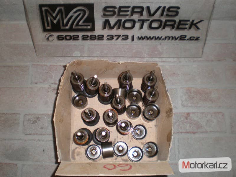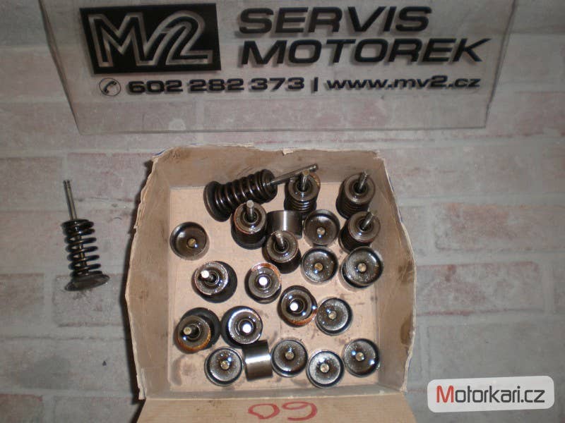 sací a výfukové ventily, cena za kus, ventil-pružina-hrnek, šest má průměr tácku 33,5 mm., šest 27 mm.,délka 90 mm., průměr dříku 5 mm.( inzerát je aktuální, prodané díly ihned mažeme, pro bližší info používejte pokud možno e-mail, děkujeme za pochopení! MV2 moto)