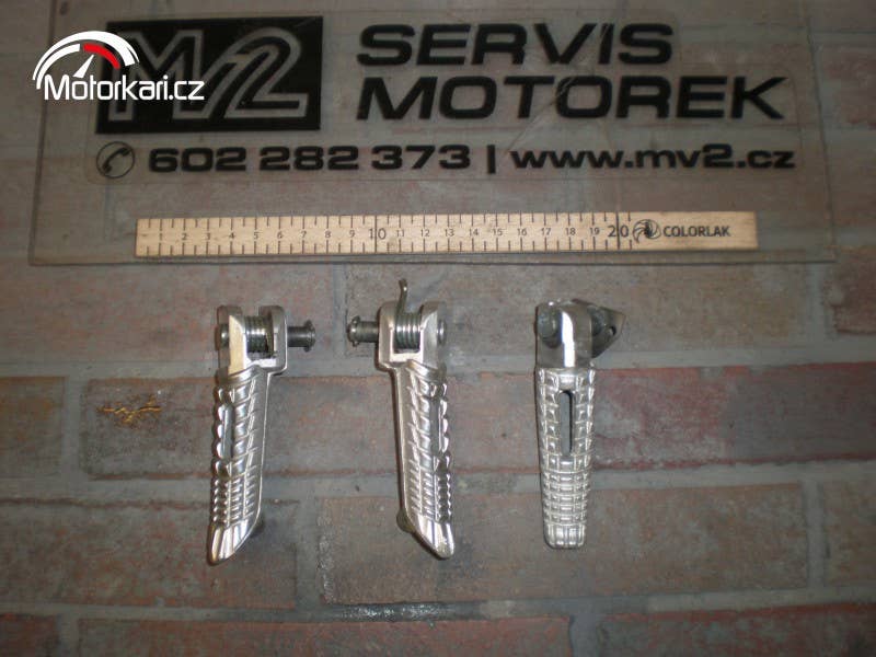 oproti fotce již pouze zadní stupačka( K6-7), obě přední, levá zadní, lehonce sedřené, jinak plně funkční, cena za kus( inzerát je aktuální, prodané díly ihned mažeme, pro bližší info používejte pokud možno e-mail, děkujeme za pochopení! MV2 moto)