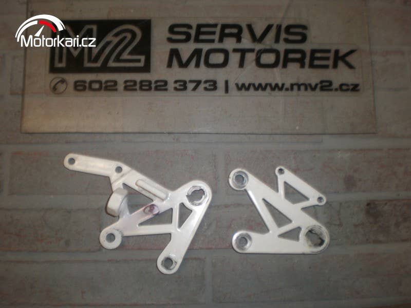 držák přední stupačky, levý, pravý, plně funkční a zachovalý stav, cena za kus( inzerát je aktuální, prodané díly ihned mažeme, pro bližší info používejte pokud možno e-mail, děkujeme za pochopení! MV2 moto)